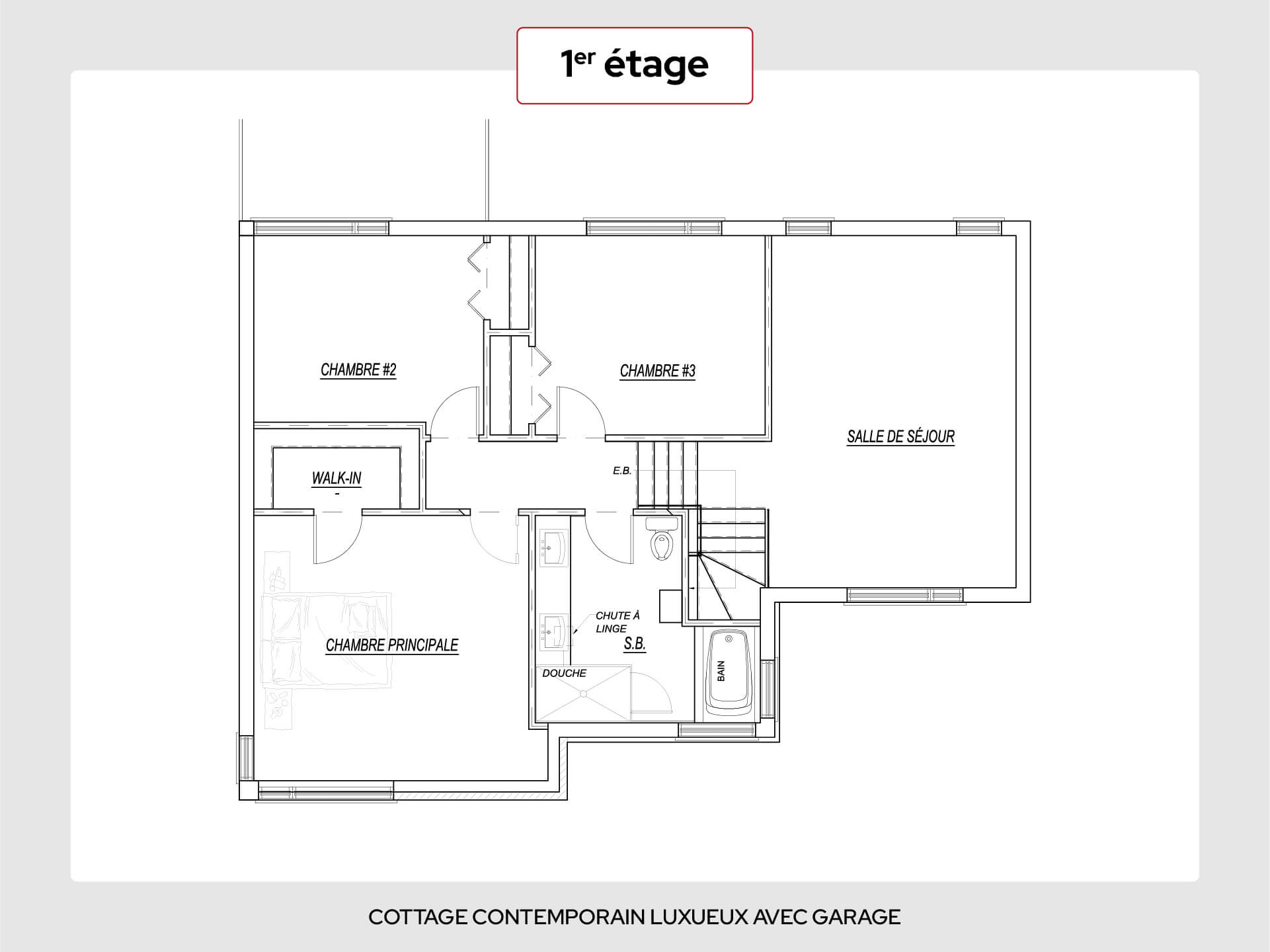 Le cottage Catherine s’impose comme l’un des modèles les plus appréciés d’Impec : une maison vaste, lumineuse, à l’architecture contemporaine et au confort impeccablement réfléchi. Avec ses grandes chambres, son escalier central signature et ses espaces de vie aérés, ce modèle combine fonctionnalité, sophistication et possibilités d’aménagement quasi infinies — dont la création jusqu’à 5 chambres selon vos besoins.