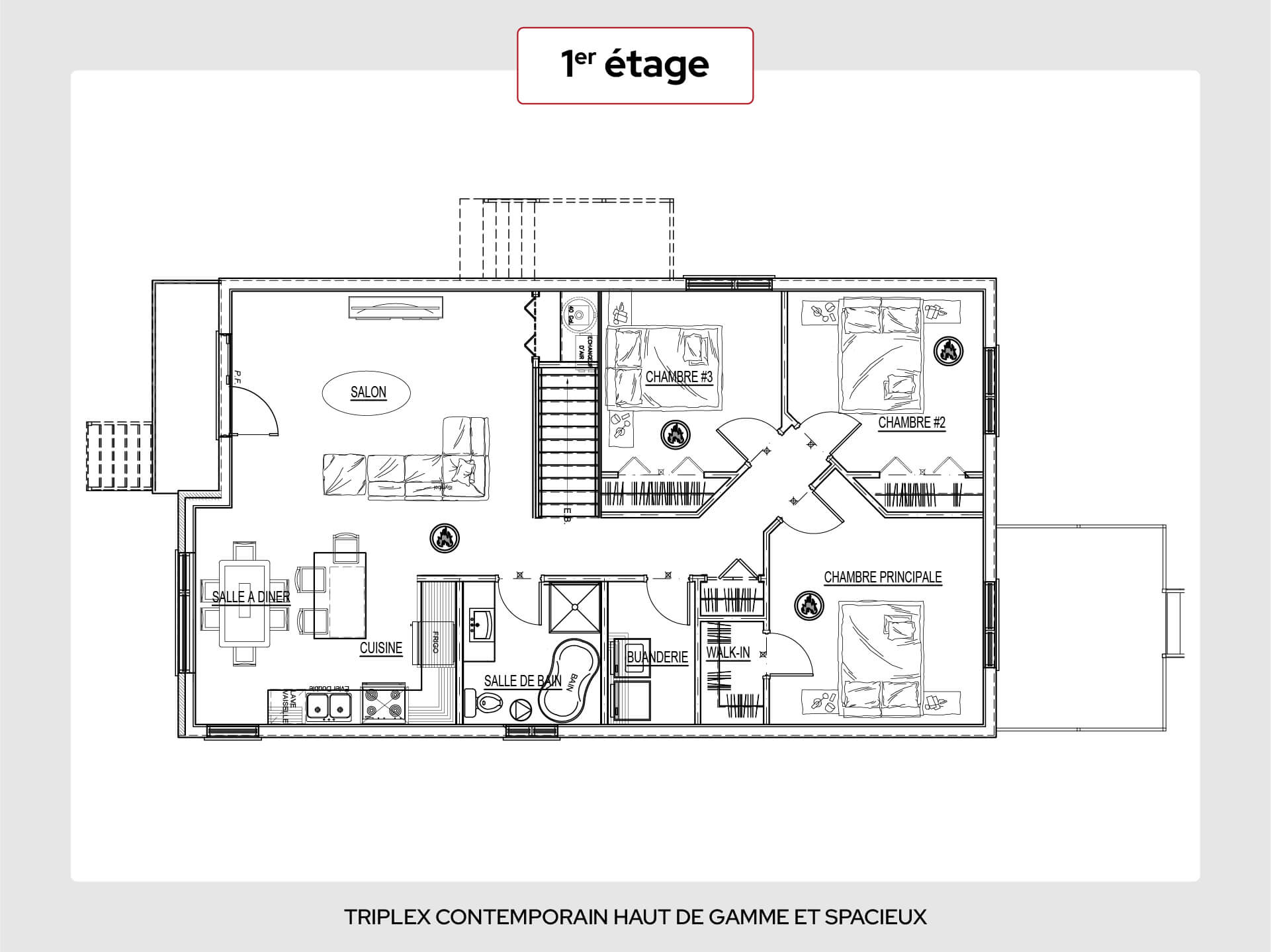 Ce triplex contemporain haut de gamme et spacieux propose un concept unique visant à maximiser l’espace habitable et le confort des occupants. Conçu pour le marché locatif de qualité, ce modèle se démarque par ses unités 5 ½ de grande superficie, recherchées par les familles et les locataires souhaitant un cadre de vie supérieur.